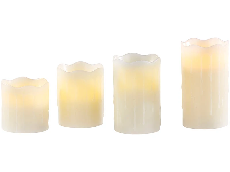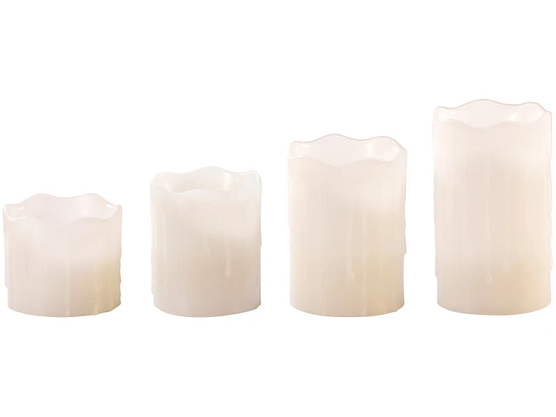 - 4 weiße, abgestufte LED-Echtwachskerzen mit flackernder Candlelight-LED