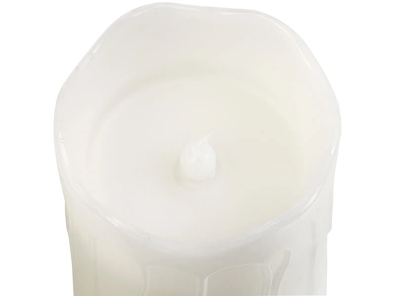 Die liebevoll gestalteten LED-Kerzen mit weißem Echtwachs-Mantel sind von normalen Kerzen fast nicht zu unterscheiden: Unregelmäßig flackernde LEDs erzeugen die Illusion von echtem Kerzenschein. Schon aus 2 Metern Entfernung ist kaum zu erkennen, dass es sich hier nicht um echte Kerzen handelt.