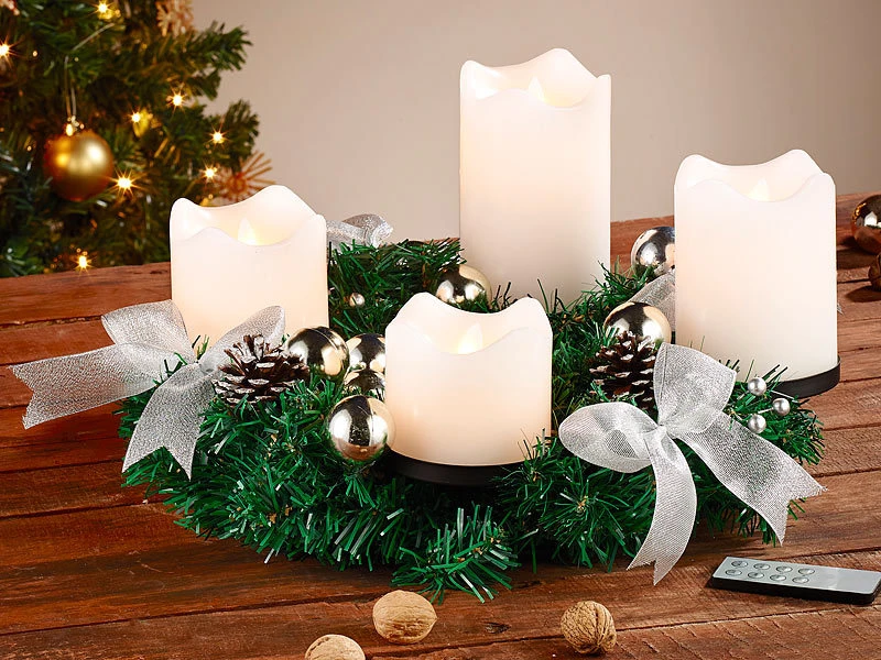 - Adventskranz inklusive 4 LED-Echtwachskerzen, Fernbedienung und deutscher Anleitung – Advent Deko Kranz – Außerdem relevant oder passend zu: Silber, Winter, Weihnacht, Weihnachten, Kabellose Weihnachtskerzen