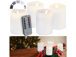 - 4 LED-Adventskerzen inklusive Fernbedienung mit Knopfzelle und deutscher Anleitung – Rundkerzen – Außerdem relevant oder passend zu: Dimmer, Stabkerzen, Leuchtmittel Batterie
