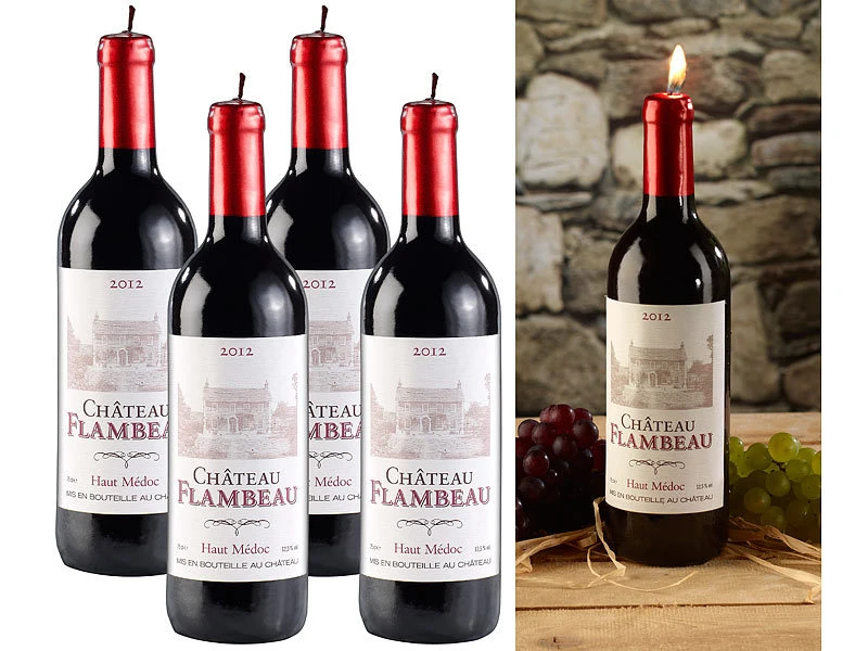 - 4 Dekorative Kerzen im Design einer edlen Flasche Rotwein