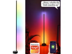 Luminea Home Control Eckleuchte:WLAN-Steh-/Eck-Leuchte Mit RGBW-IC-LEDs, 12 W, Dimmbar, App, Weiß