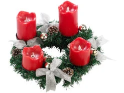 Britesta Tannenkränze LED-Kerzen:Adventskranz, Silbern, 4 Rote LED-Kerzen Mit Bewegter Flamme
