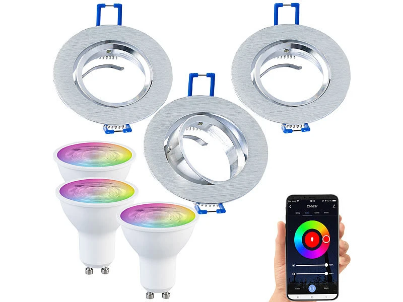- 3 LED-Lampe LAV-300.zigbee je inklusive Einbaustrahler-Rahmen und deutscher Anleitung