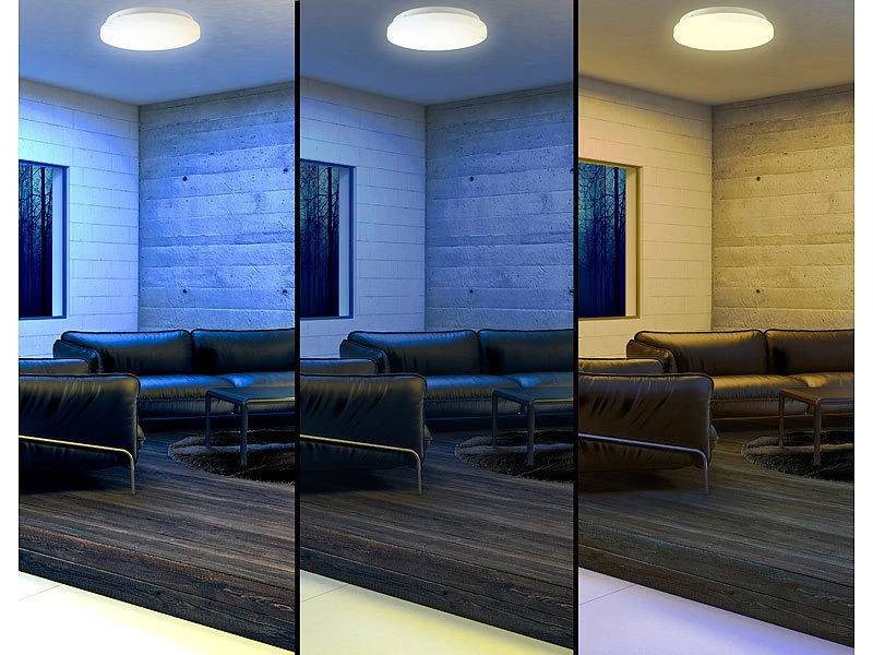 - Farbtemperatur regelbar von warmweiß (2700 K) bis tageslichtweiß (6500 K)