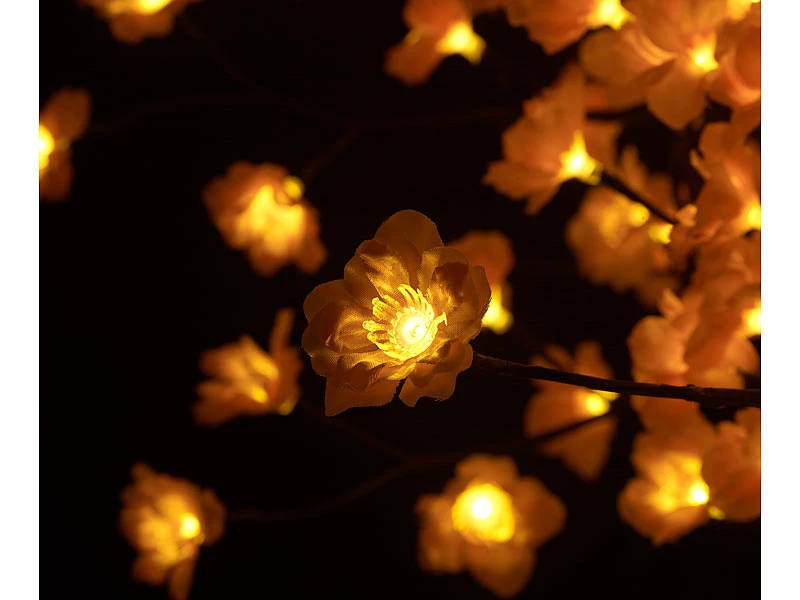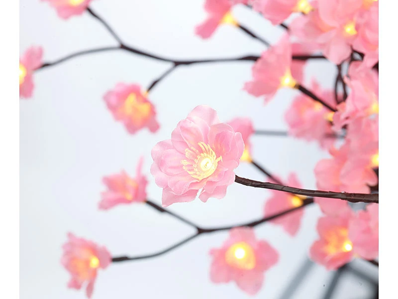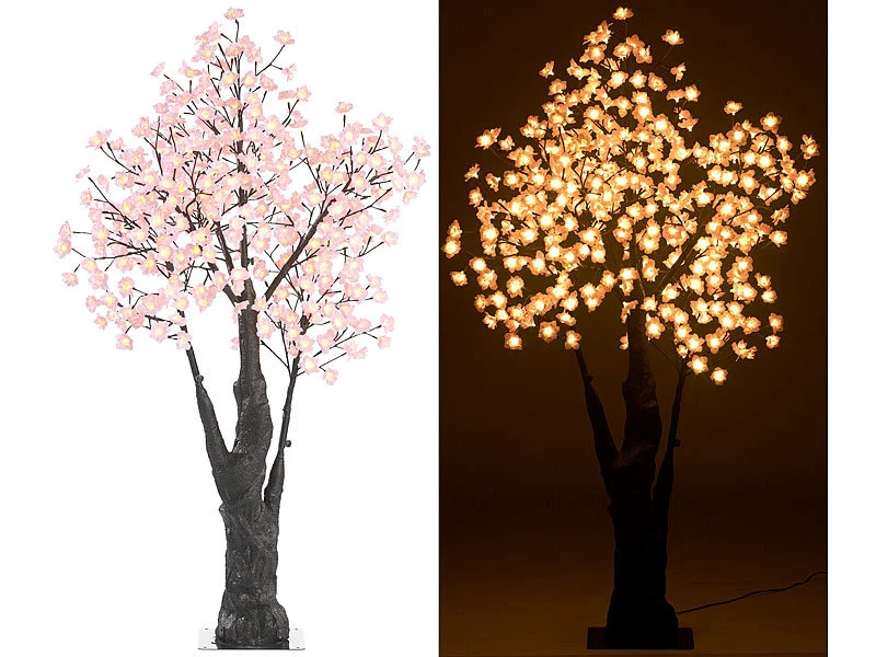 Setzen Sie funkelnde Lichtakzente im Wintergarten, Wohnzimmer, Schaufenster oder auf Ihrer Terrasse. Tagsüber erfreut Sie der buschgroße Baum mit lieblichen japanischen Kirschblüten, abends strahlt er mit 384 warmweißen LEDs.