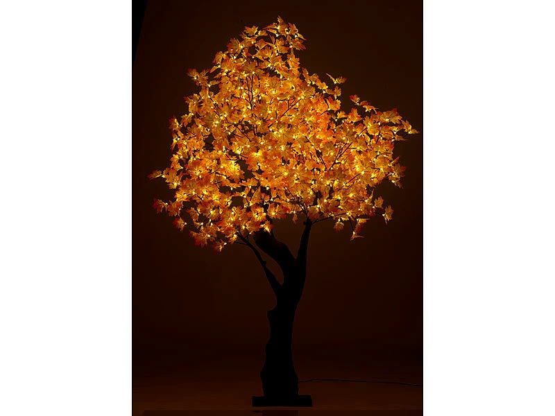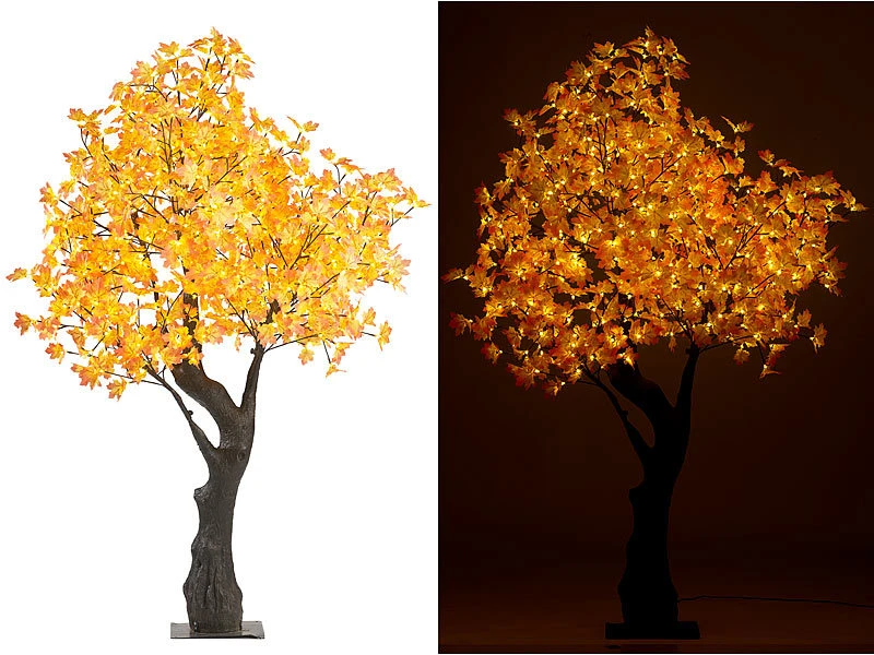 Setzen Sie funkelnde Lichtakzente im Wintergarten, Wohnzimmer, Schaufenster oder auf Ihrer Terrasse. Tagsüber erfreut der lebensgroße Baum mit gelb-orangem Herbstlaub, abends strahlt er mit 576 warmweißen LEDs.