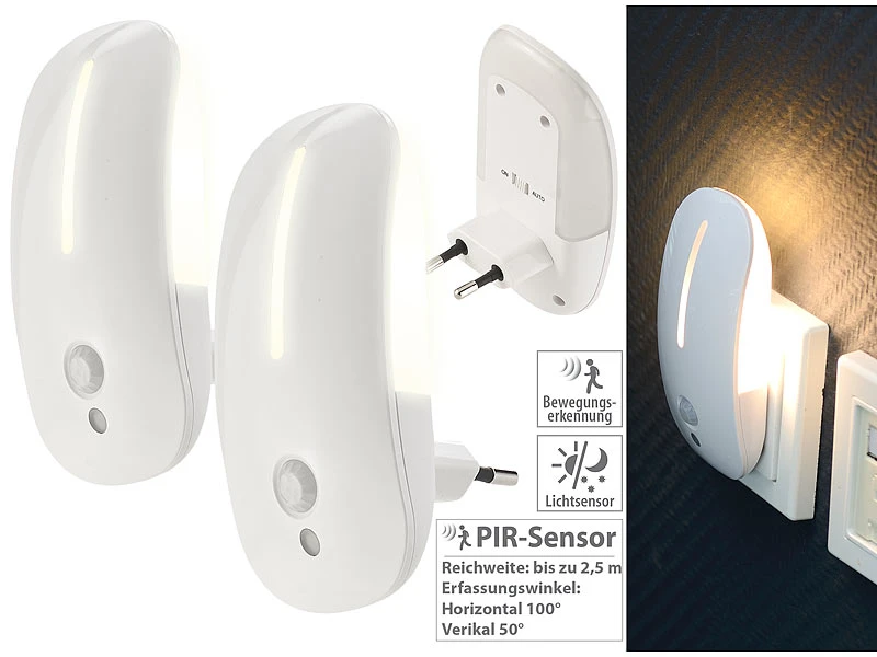 - 2 Nachtlichter inklusive deutscher Anleitung – Bewegungsmelder Senioren – Außerdem relevant oder passend zu: Baby, Lampe, Lichtschalter, Bewegungssensor, Bewegungsmeldern, Dämmerungsschalter