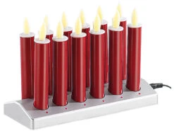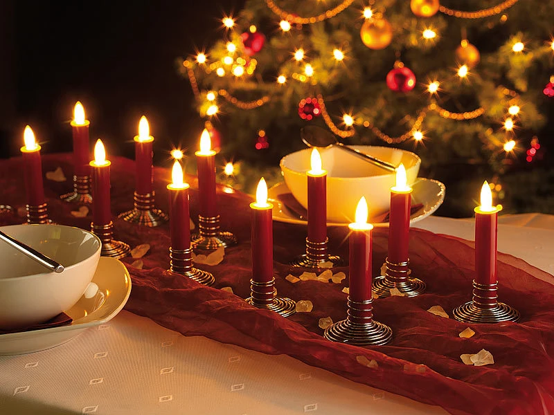 Lunartec Pyramidenkerzen:12 Stimmungsvolle LED-Akku-Kerzen Mit Edelstahl-Haltern, Rot