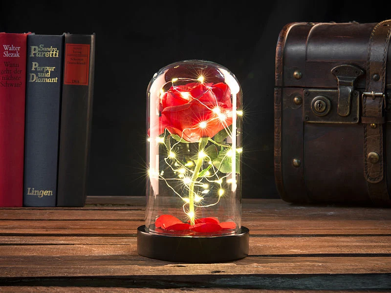 - Rose auf Plattform inklusive Kuppel-Vitrine und deutscher Anleitung – Blume – Außerdem relevant oder passend zu: Love, Liebe, Ewige, Ewiges, Blüten, Ostern, Pflanze, Batterie, Valentin, Frühling, Pflanzen, Abdeckung, Muttertag, romantisch, Geburtstag, Beleuchtete, Valentinstag, Lichterketten, unter Glasglocke