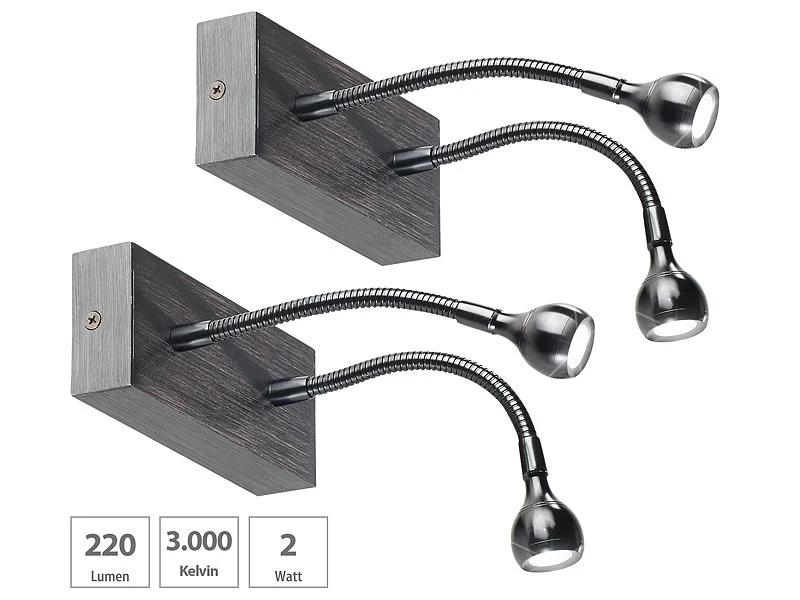 - 2 LED-Bett- und Lese-Doppel-Leuchten für die Wandmontage
