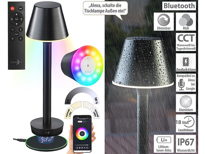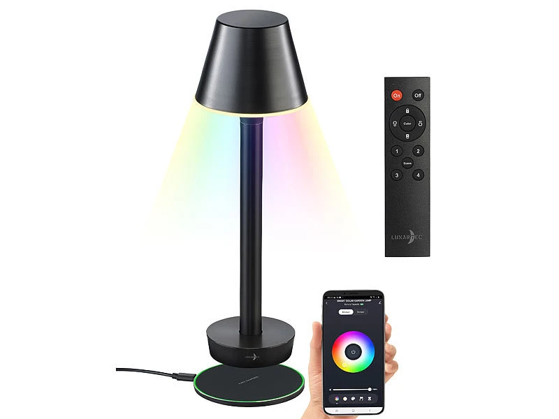- Kabellose Outdoor-Tischlampe mit Akku und Qi-Ladematte