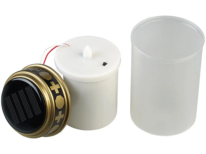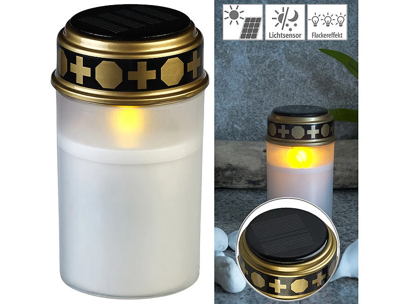 - Weiße LED-Grabkerze mit unauffälligem Solar-Panel im Deckel