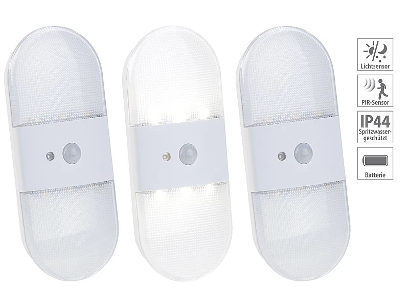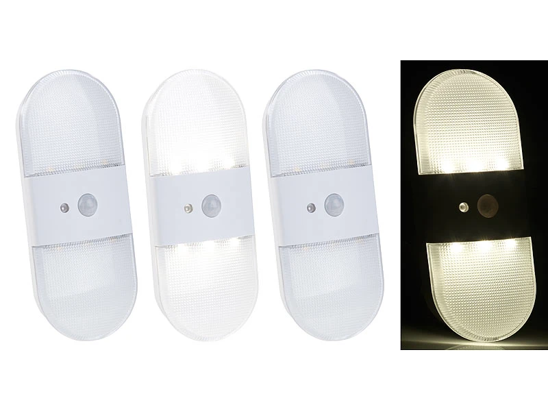 - 3 LED-Wandleuchten inklusive Montagematerial und deutschen Anleitungen – Lampe mit Bewegungsmelder Batterie – Außerdem relevant oder passend zu: WC, Wand, ohne, Spot, Toilette, Blackout, Bewegung, Infrarot, Toiletten, Leuchtmittel, Nachtlicht Dämmerungs