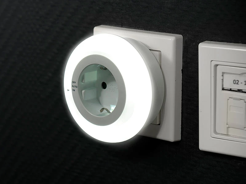 Dauerlicht oder Licht-Automatik per Dämmerungs-Sensor: 3 sparsame LEDs pro Leuchte sorgen für eine bessere Orientierung. Und das mühsame Ertasten der Lichtschalter gehört der Vergangenheit an!